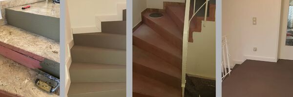 Fugenlose Wand- und Bodengestaltung eignet sich auch im Treppenhaus. In schmalen Fluren lässt sich durch fugenlose Gestaltung eine ganz eigene Ästhetik erschaffen.