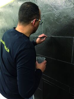 Verwendung findet unser Schiefereffekt in allen öffentlichen Gebäuden, Konferenzräumen etc. oder repräsentativen Privaträumen. Er ist die Alternative für echte Schieferplatten.